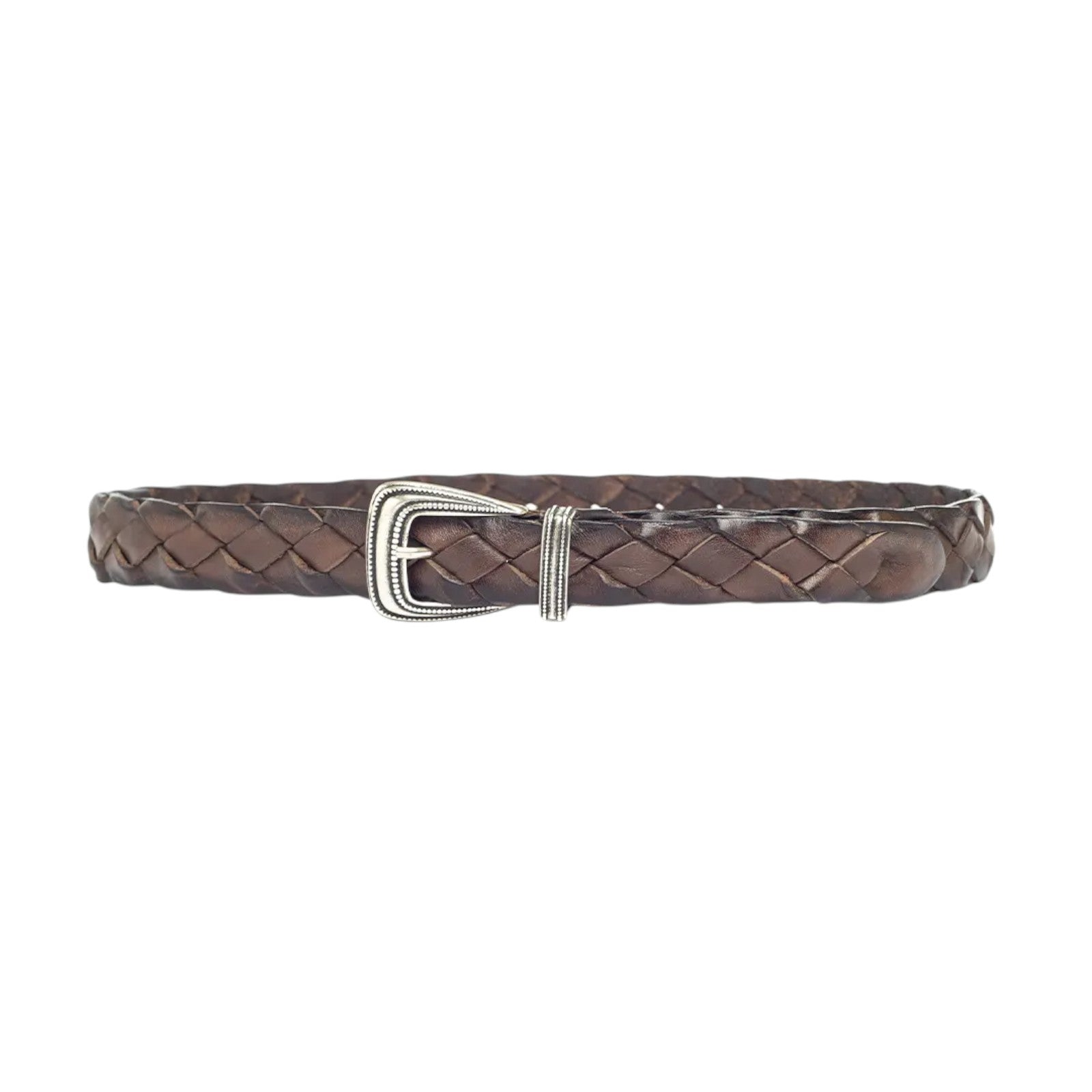 CINTA VERA PELLE TRECCIA MARRONE