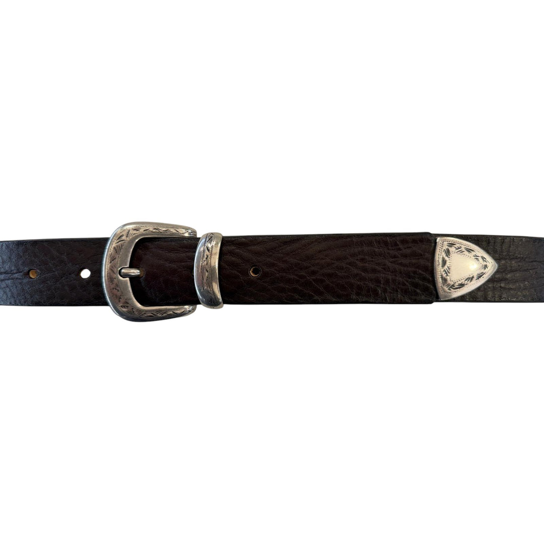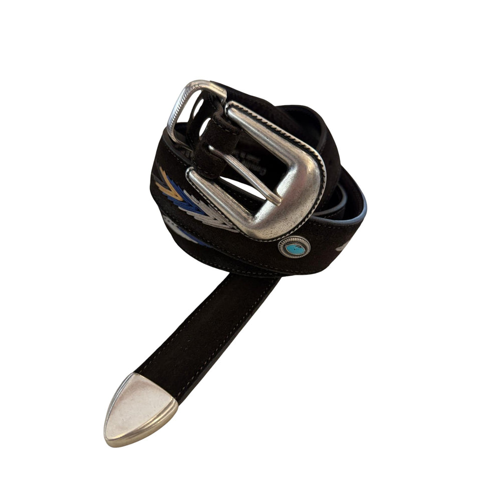 Les ceintures en cuir véritable comprennent des modèles classiques en cuir lisse et suédé dans les tons marron foncé, noir, cognac et bleu, des ceintures tressées à la main, des modèles western avec des boucles originales et des versions vintage avec des clous et des détails turquoise. Le savoir-faire artisanal italien garantit des coutures solides, un tannage traditionnel et des finitions qui s'améliorent avec l'usage.
