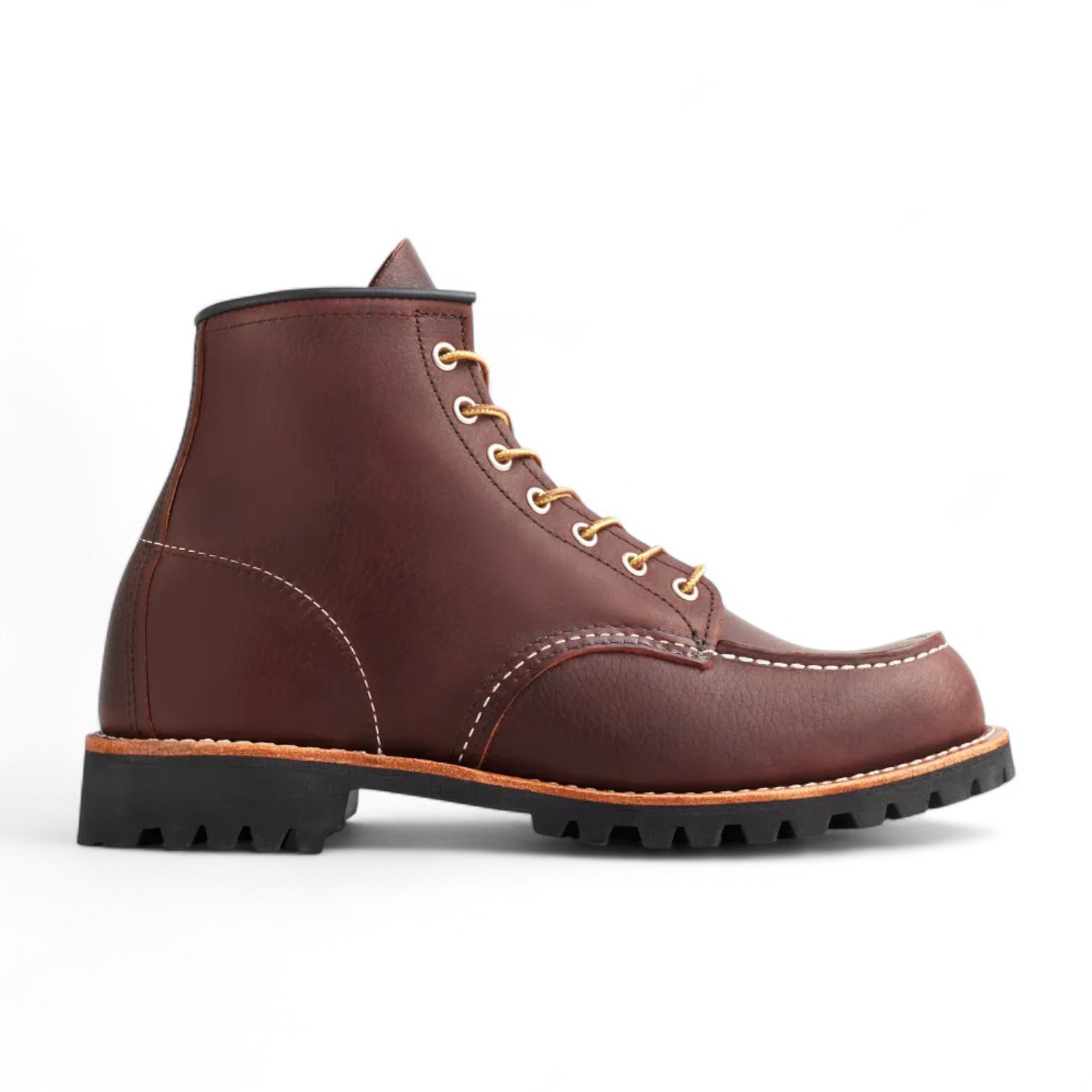 La Red Wing Shoes 8146 Roughneck Moc Toe en Briar Oil Slick est une mocassin classique de Red Wing Shoes, fabriquée à Red Wing, dans le Minnesota. La botte Red Wing 6" Moc Toe a été initialement conçue pour les chasseurs et les agriculteurs au début des années 50. La Red Wing Moc-toe a été conçue pour résister aux travaux lourds et aux conditions météorologiques difficiles. Le nom Red Wing « Moc Toe » vient de « mocassin », le mot traditionnel des Amérindiens algonquins pour désigner la forme en U de la pointe. La Red Wing Shoes Roughneck 8146 est une variante du modèle classique par excellence de Red Wing : la Red Wing 875. La botte Red Wing 8146 est dotée d'une semelle extérieure Vibram Lug noire qui offre une adhérence maximale ainsi qu'un confort et une tenue exceptionnels. La botte Red Wing 8146 Roughneck est équipée des lacets ronds originaux en taslan doré/marron clair.